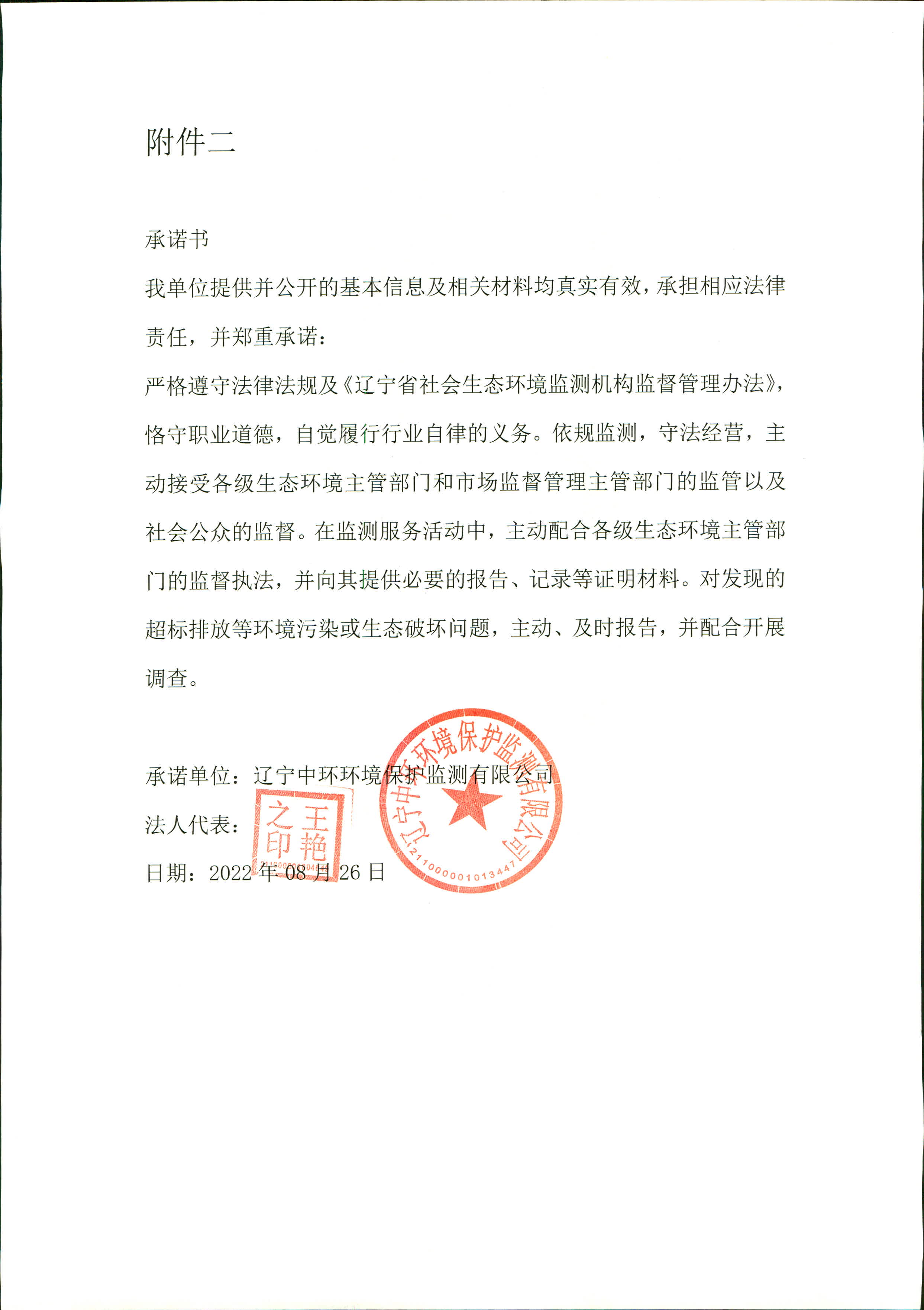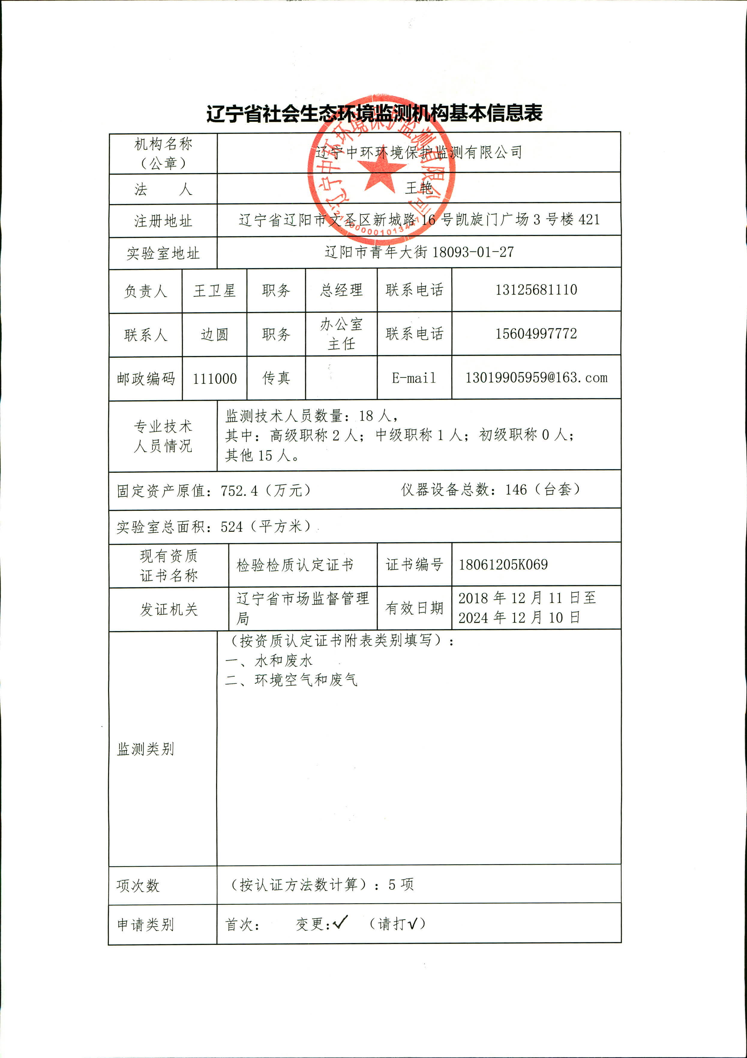 遼寧中環(huán)環(huán)境保護監(jiān)測有限公司作為社會生態(tài)環(huán)境監(jiān)測機構(gòu)應文件要求向社會公開基本信息,如附件。
